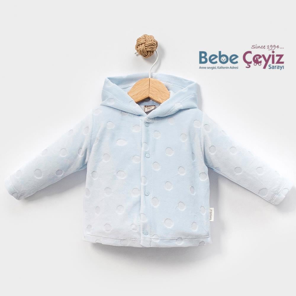 BEBİTOF Puan Jakarlı Kadife Kapşonlu Hırka ( Mavi ) (047.60054.01)