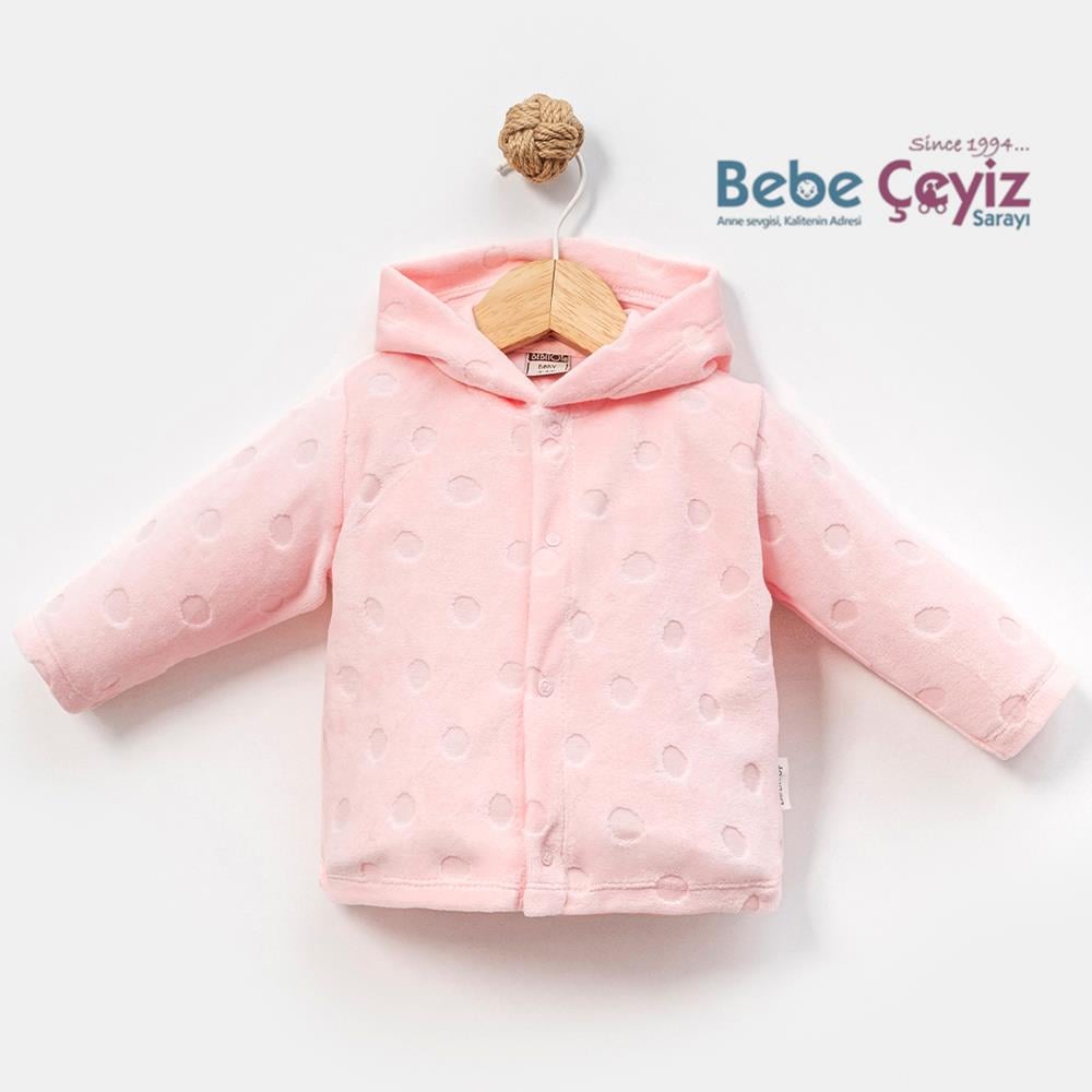 BEBİTOF Puan Jakarlı Kadife Kapşonlu Hırka ( Somon ) (047.60054.05)