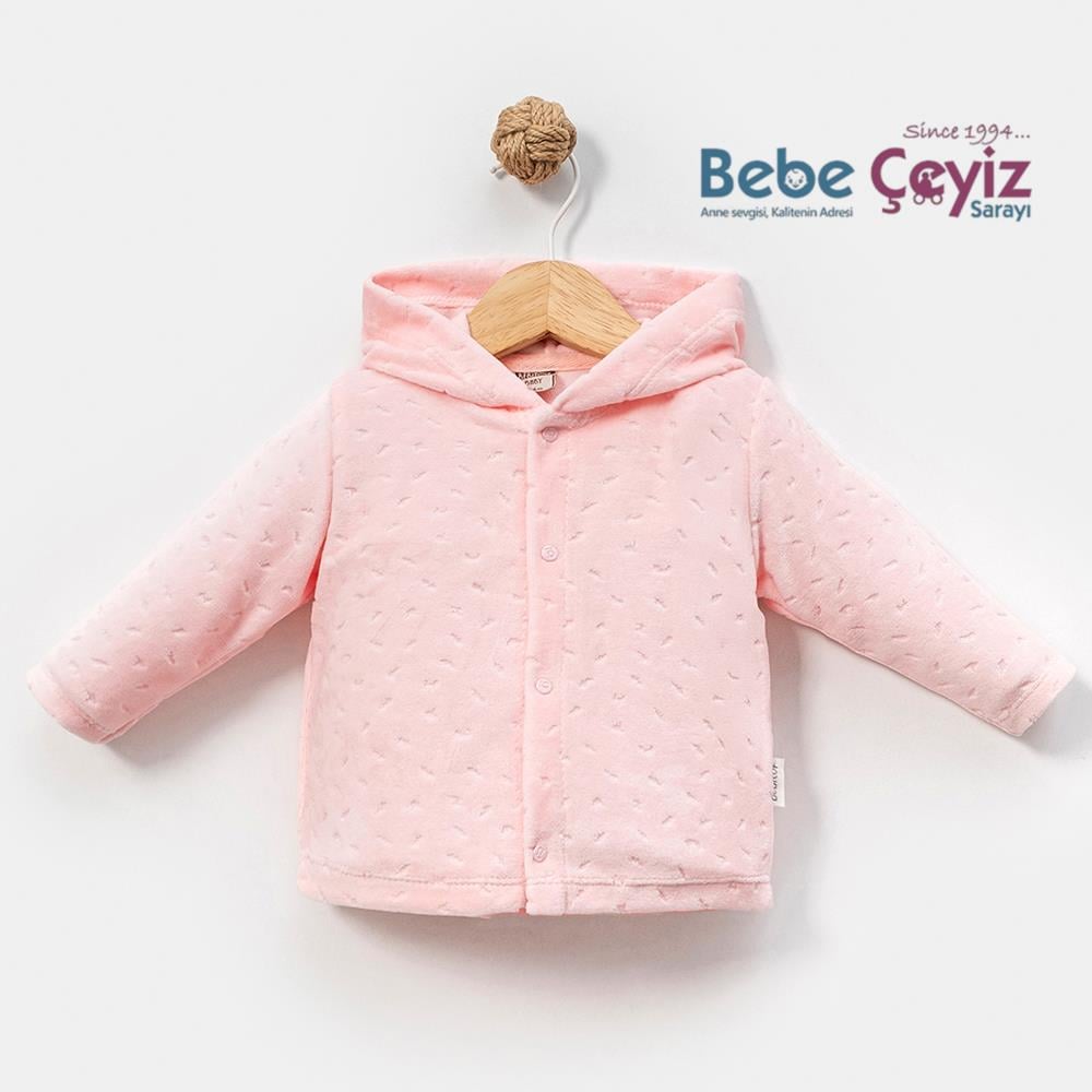 BEBİTOF Yaprak Jakarlı Kadife Kapşonlu Hırka (047.60055.05)