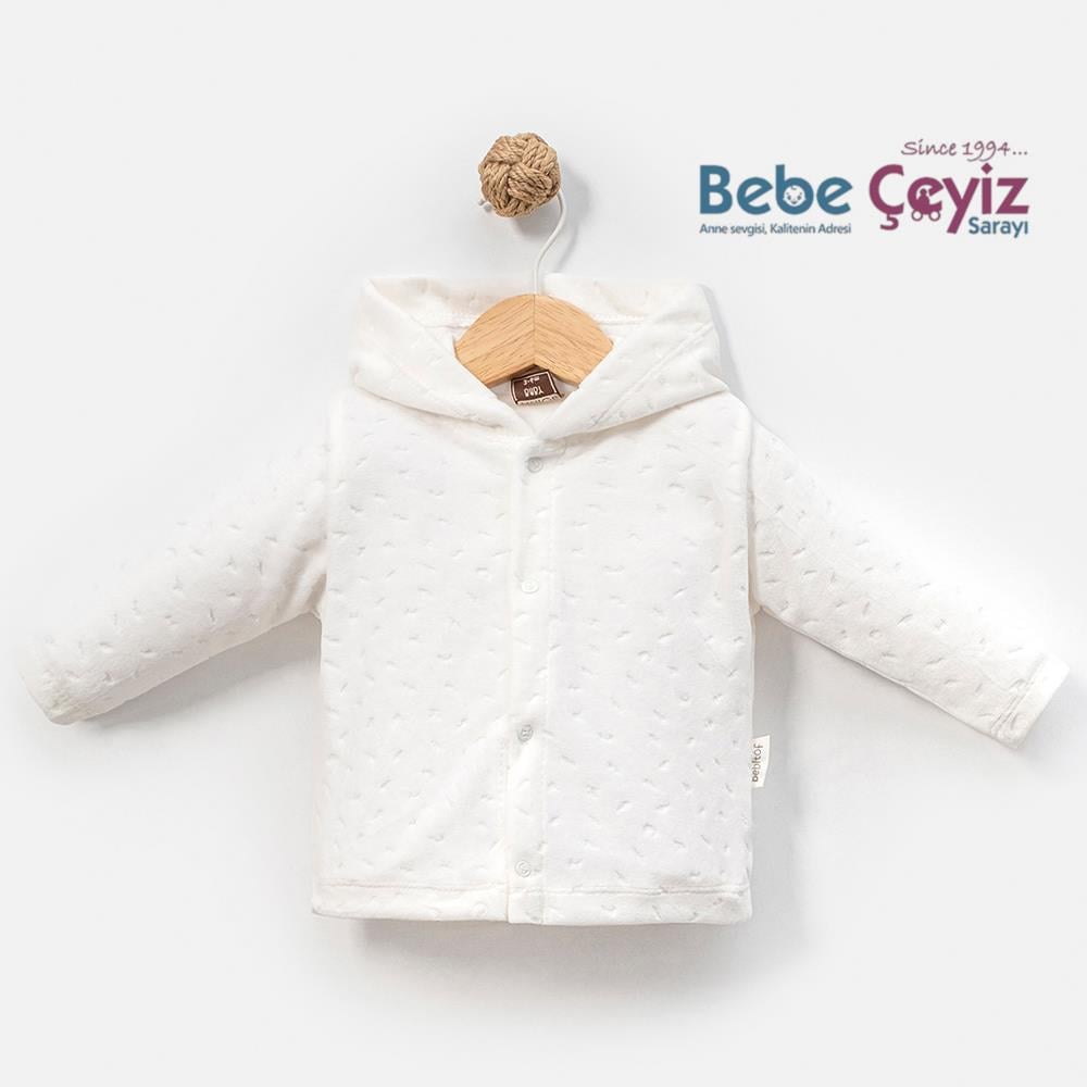 BEBİTOF Yaprak Jakarlı Kadife Kapşonlu Hırka (047.60055.03)