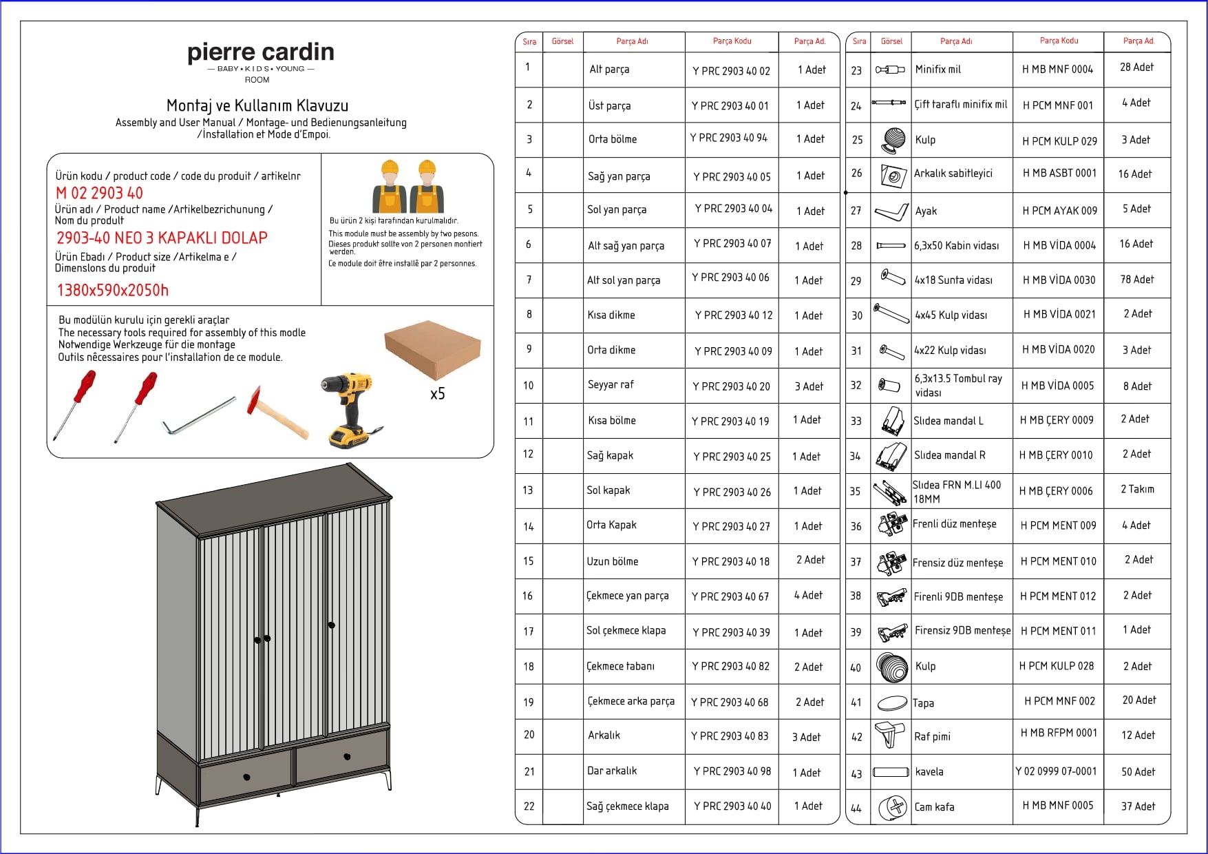 PİERRE CARDİN Neo 3 Kapılı Dolap